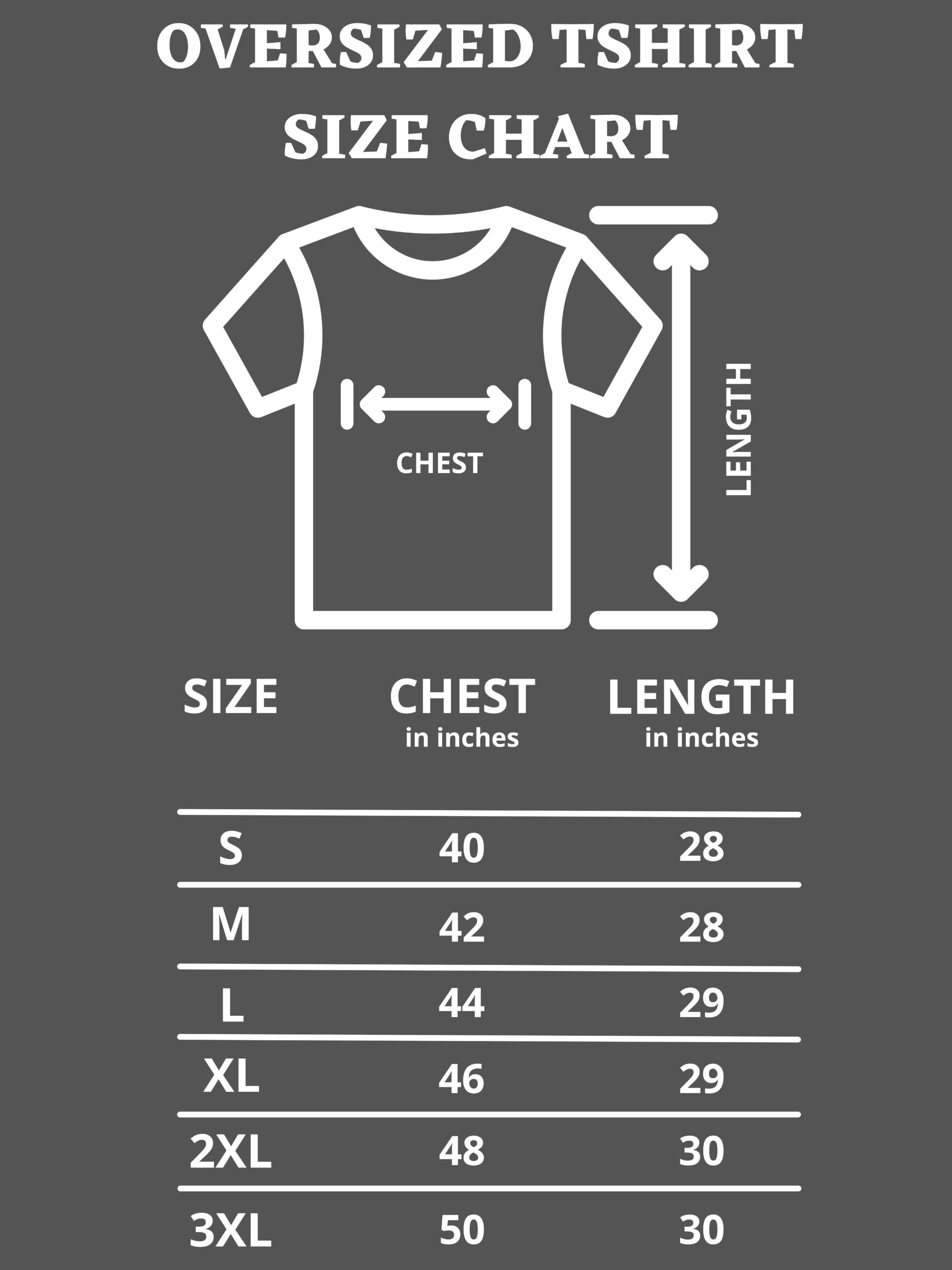 OVERSIZED TSHIRT SIZE CHART